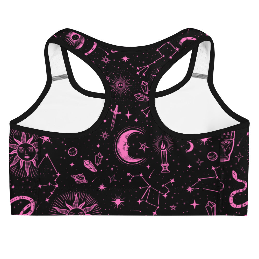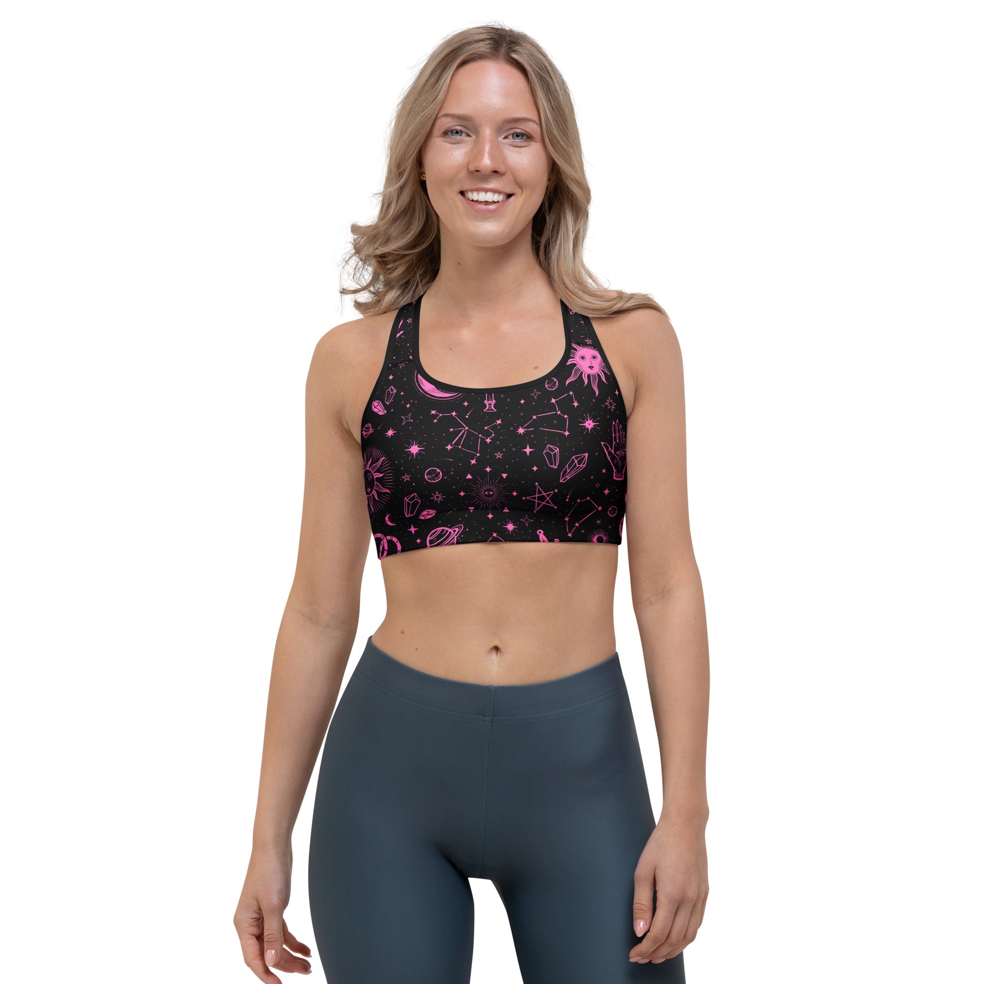 This gorgeous sports bra is made from moisture-wicking material that stays dry during low and medium intensity workouts. The bra has support material in the shoulder straps, double layer front, and a wide elastic band to ensure constant support.